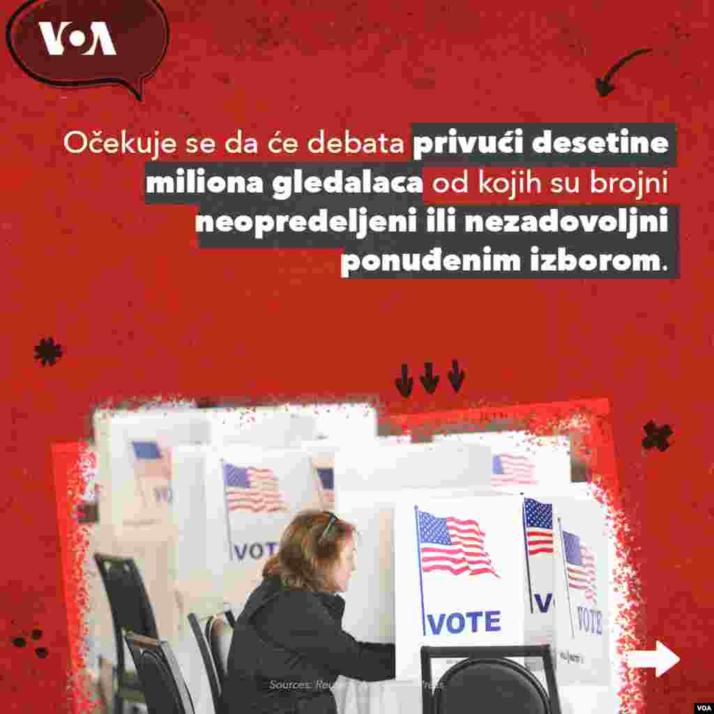 Predsednik Džo Bajden i njegov prethodnik Donald Tramp sučeliće stavove u prvoj debati uoči novembarskih izbora. Debata se održava u Atlanti i to po strožim pravilima u odnosu na njihov prethodni susret 2020 – koja bi trebalo da preduprede prekidanja i omoguće diskusiju. Dve debate, koliko ih je planirano, mogle bi biti ključne za obojicu kandidata pošto su prema anketama gotovo izjednačeni u trenutku kada brojni birači poručuju da su neopredeljeni ili nezadovoljni izborom koji imaju.