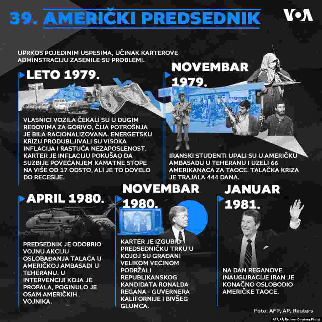 Bivši američki predsednik Džimi Karter, koji je u nedelju preminuo u 101. godini, biće sahranjen uz najviše državne počasti 9. januara. Tog dana biće proglašen i nacionalni dan žalosti, dok će zastave na državnim institucijama biti mesec dana spuštene na pola koplja u čast preminulog predsednika. Karter je bio najdugovečniji američki šef države – koji je u oktobru 2024. proslavio stoti rođendan. ◽Kako je tekao njegov životni put?