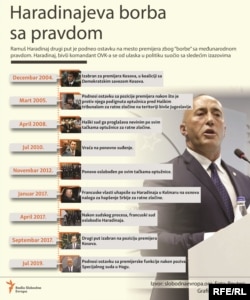 Ovo je inače treći put da Haradinaj odlazi za Hag. Ostavku sa premijerske pozicije podneo je i 2005. kada se dobrovoljno predao Haškom tribunalu gde je bio optužen za ratne zločine. Sedam godina kasnije, 2012. je oslobođen svih optužbi. Bilo je to ponovljeno suđenje, nakon što je isti sud 2008. godine doneo oslobađajuću presudu po optužbama u vezi kršenja ratnih zakona.