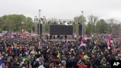 Protest "Svi kao jedan" u sklopu serije protesta "1 od 5 miliona" ispred Skupštine Srbije u Beogradu, 13. aprila 2019. (Aleksandra Nenadović, VOA)