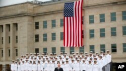 U Pentagonu, ceremonija je počela razvijanjem američke zastave na zapadnoj strani u koju je udario jedan od aviona. Na istom mjestu su, dan posle napada, dok je zgrada još gorela, vatrogasci takođe razvili zastavu.